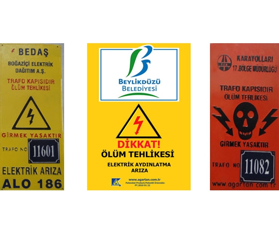 Bir çok işletme tarafından kullanılan tehlike ve uyarı işaretleri firmamız bünyesinde tasarlanıp üretilmetedir.